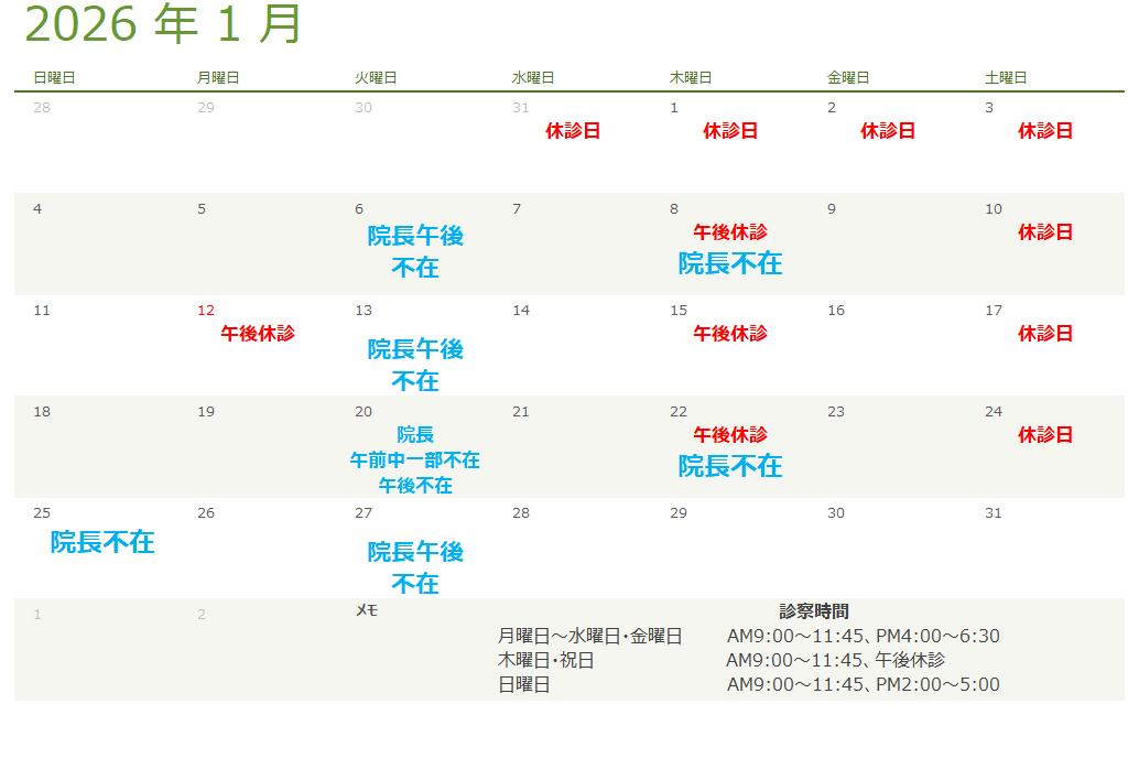 1月院長不在のお知らせ