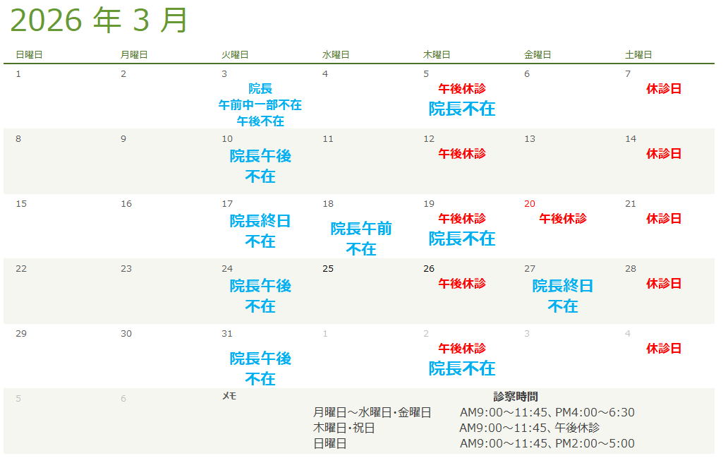 3月院長不在のお知らせ